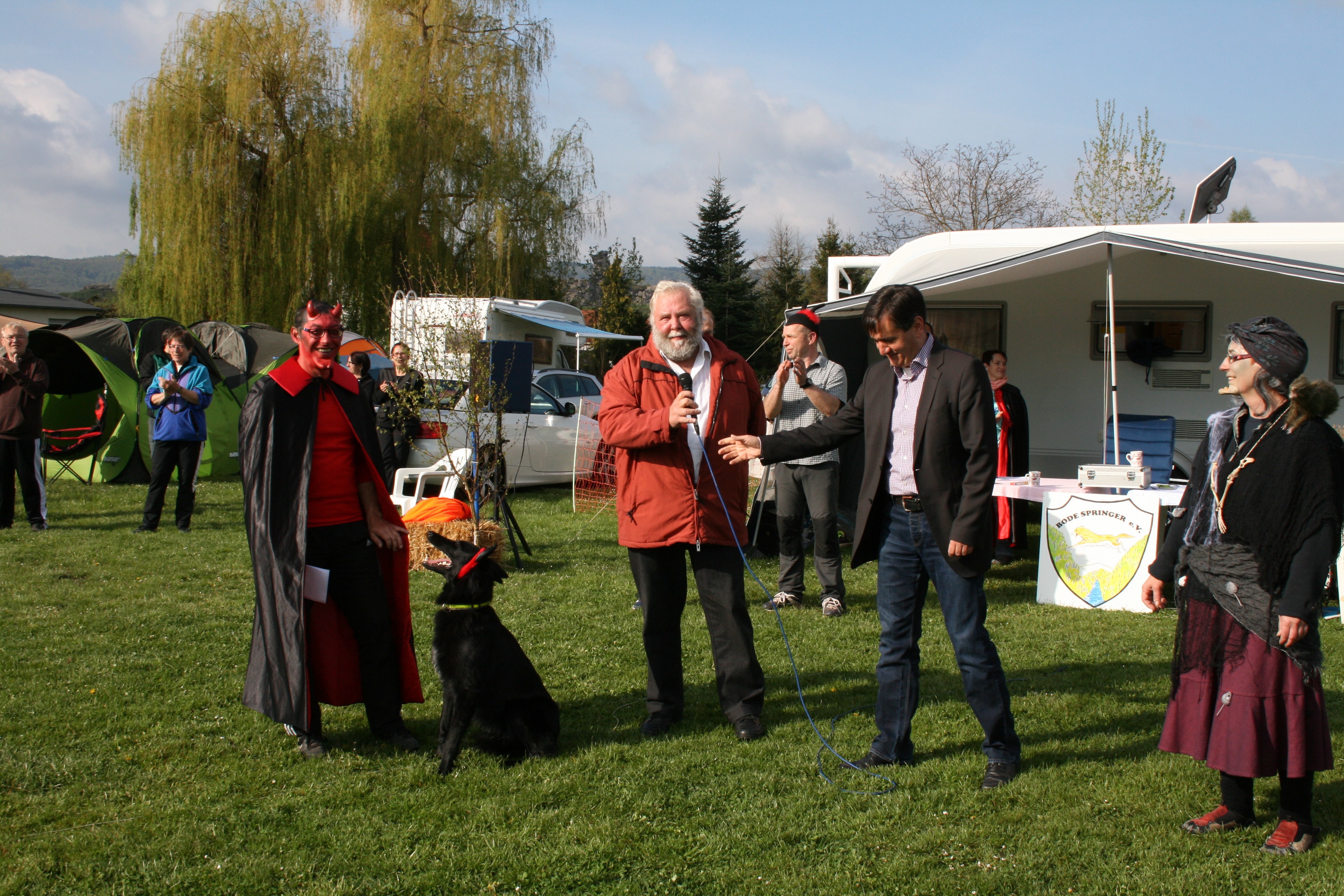 Da ja in Jedem von uns ein kleiner Teufel oder eine Hexe steckt, entschlossen wir uns, ein Agilityturnier um die Walpurgisnacht herum zu veranstalten: unser Walpurgisturnier. Hier kann man seinen inneren Teufel oder Hexe herauslassen. Es muss doch auch mit dem Teufel zugehen, wenn man die Läufe nicht schafft. Manchmal ist auch der Parcoursverlauf wie verhext, welcher Teufel hatte da wohl sein Händchen im Spiel??? Aber auch bei den Hunden ist es nicht anders. So mancher Hundebesitzer ruft verzweifelt „du olle Hexe“ oder „du Satan“, wenn der liebe Vierbeiner einen anderen Weg als gedacht nimmt, die Kontaktzonen überspringt oder anderen Unfug auf dem Parcours treibt. Eben ein Hexen- und Teufelsturnier...